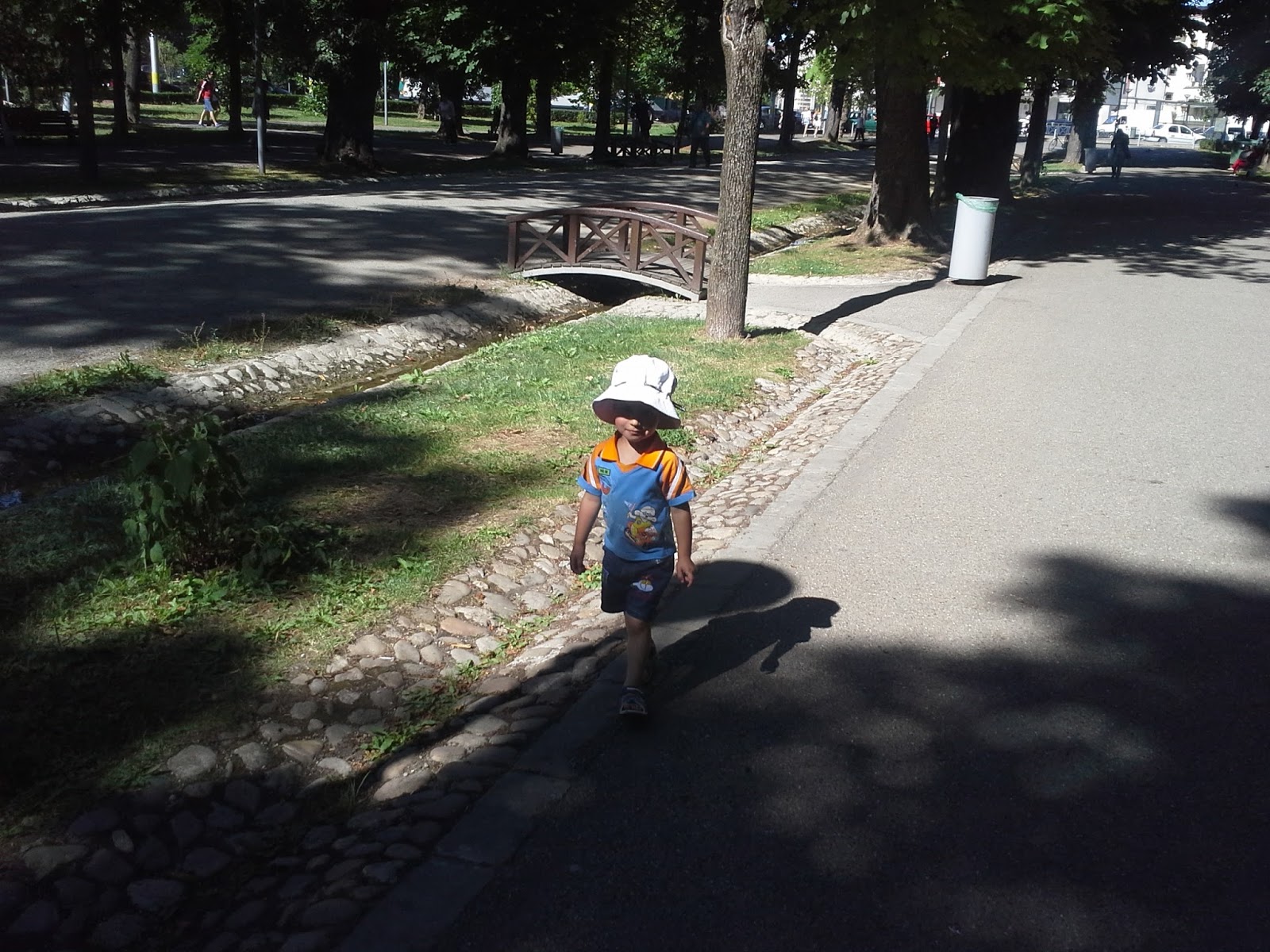 Bună e trambulina, dar călătorului îi stă bine cu drumul! Am pornit spre cascadă. Pe drum, dumnealui se plângea că îl doare spatele (m-a auzit pe mine de câteva ori) și era supărat că nu îl duc în brațe.